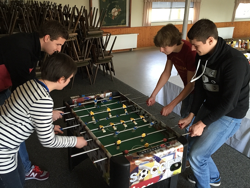 Fotos v.l.n.r.: Für Spaß sorgte am Karfreitag auch der neue Tischkicker, den die Jungschützen gespendet bekamen.