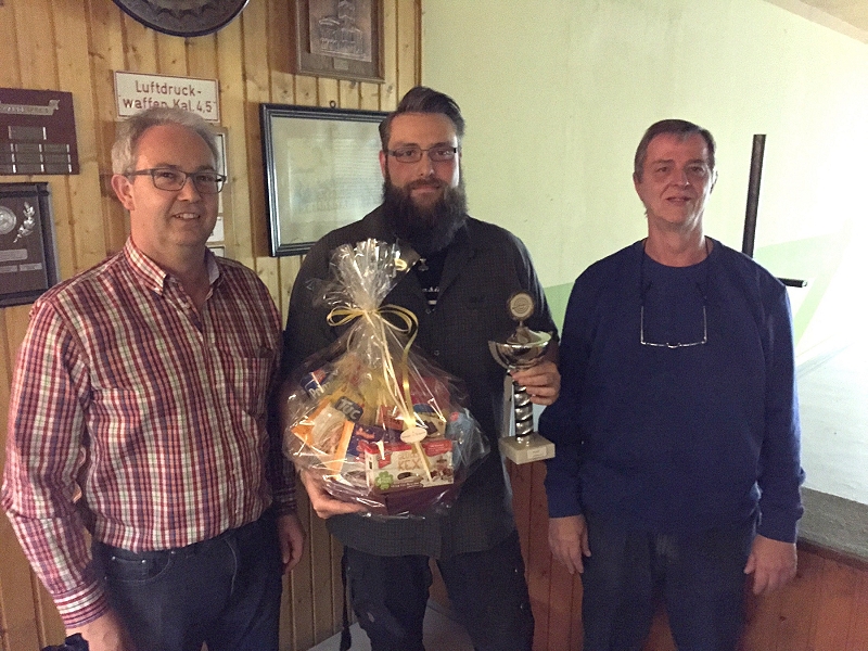 Höhepunkt des Abends war die Verkündung der Winterrundensieger. Kai Weißenbrunn durfte sich in den Disziplinen Scheibe und Teiler über zwei souverän errungene Titel freuen. Spannend war der Wettbewerb um den Stern. Nachdem Stefan Doetsch und Manfred Lespagnol in der Vorwoche keine Schwäche zeigten, musste die Entscheidung im Stechen am Karfreitag fallen. Manfred Lespagnol legte hierbei mit starken acht von zehn abgeschossenen Blättchen vor. Doch Stefan Doetsch behielt im Anschluss die Nerven und als das neunte Blättchen von der Stange fiel, stand er als Vereinsmeister fest.