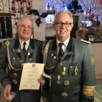 Noch ein „40-Jähriger“! Lange Jahre war Karl-Heinz Behr als Zugführer der vorderste Mann bei unseren Umzügen. Für seine Verdienste um die Bruderschaft erhielt er Anfang 2014 den Hohen Bruderschaftsorden des Bundes der Historischen Schützenbruderschaft. Nur wenige Monate später wurde er mit der Sportehrennadel der Stadt Koblenz ausgezeichnet. Unserem Verein hält er seit 1978 die Treue. Brudermeister Gerhard Riehl zeichnete ihn am Samstag für 40 Jahre Mitgliedschaft bei den Rübenacher Schützen aus.