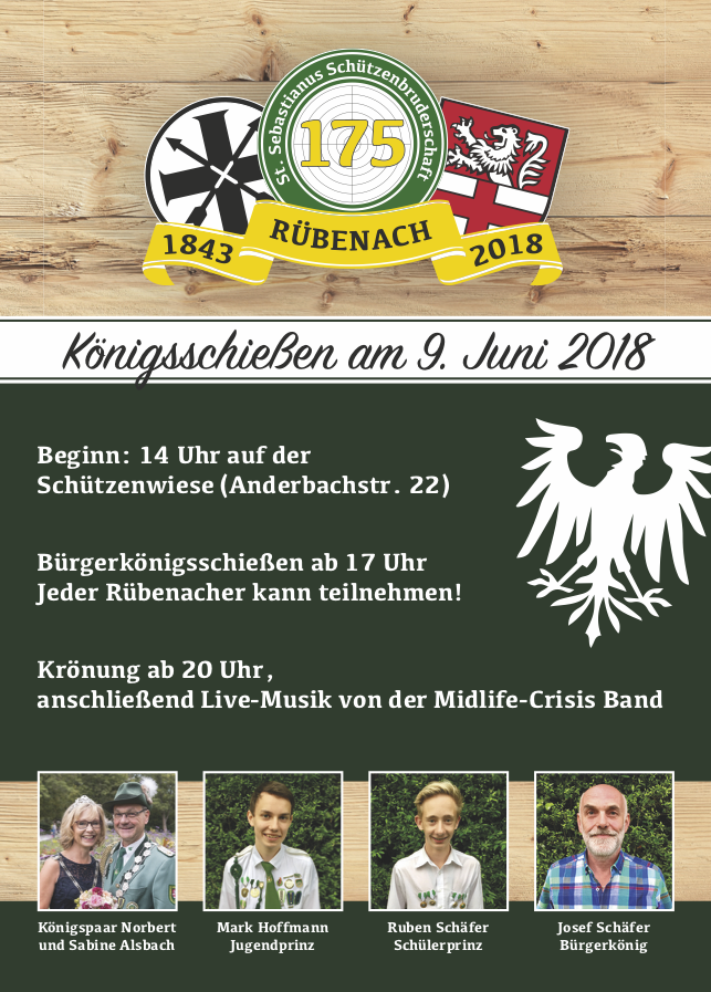 Zu ihrem Königsschießen laden die Rübenacher Schützen im Jahr ihres 175-jährigens Bestehens alle Besucher aus der Region ein. Das wichtigste Schießen des Vereins wird am Samstag, 9. Juni ausgetragen.