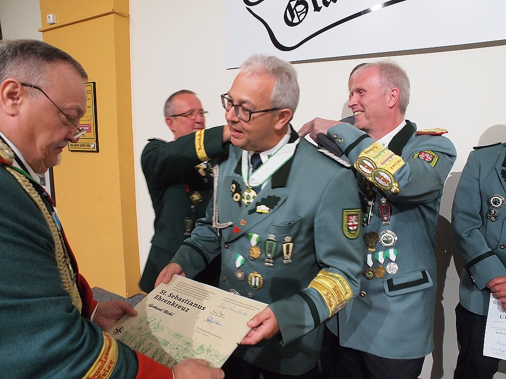 Gerhard Riehl erhält das St.-Sebastianus-Ehrenkreuz.